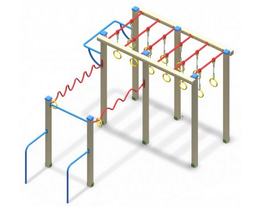 • В комплект входит: брусья, гимнастические кольца, турник, рукоход